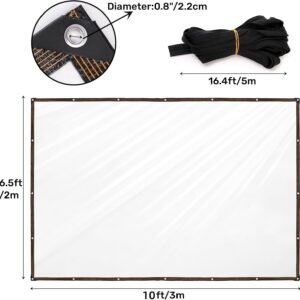 • Package Include: You will receive 2 packs heavy-duty tarpaulins, measuring approximately 9.8 × 6.5 feet, 0.12mm in thickness, larger than ordinary clear tarpaulins. Besides, 2 rolls of 16.4ft ropes are included in the package, which can meet your needs.
