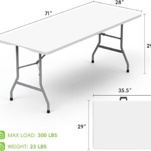 - High-Quality & Sturdy: Constructed with premium material and reinforced steel legs, our 6 ft folding table can hold up to 300 pounds, ensuring long-lasting stability and durability