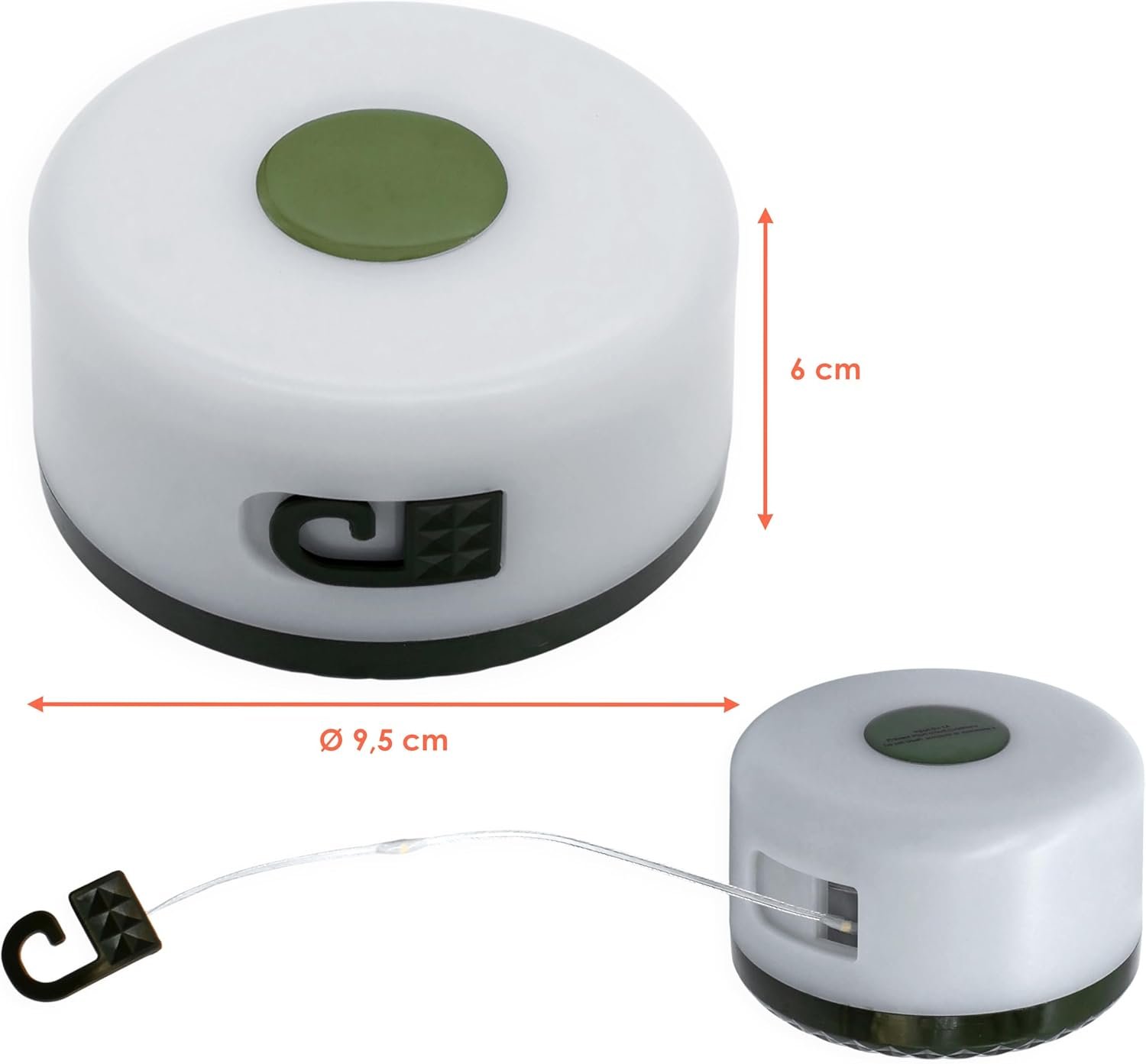 - Light colour: warm white, material: plastic, colour: white/olive green