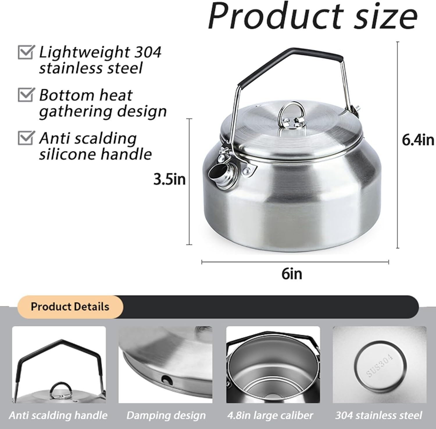 - ☕【HIGH QUALITY TEAPOT】This camping tea kettle is made of 304 stainless steel, 1L capacity meet most of the needs, boil water without any smell, you have our guarantee that it is a food-grade kettle, light weight, well-made, and very nice looking.