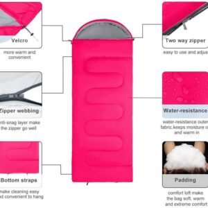 • ✅COMFORTABLE, WARM AND SKIN-FRIENDLY:The ergonomically designed envelope sleeping bag is designed with more space in mind fitting more shapes and sizes. The cool sleeping bags’s size is 82.7″ x 29.5″ inchs, compatible for adults,kids,women,girls, making your sleep more comfortable and safe.