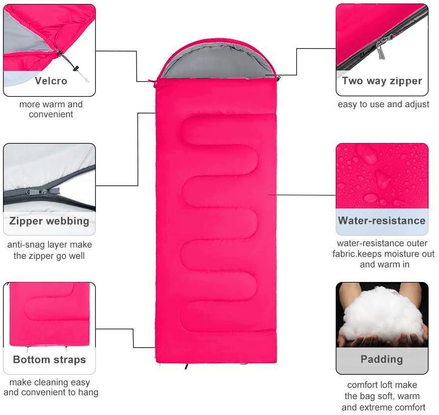 • ✅ MADE FROM HIGH QUALITY MATERIALS AND STRUCTURES FOR DURABILITY:this sleeping bag can withstand years of practical use, even for children and teenagers. We use durable fabrics to escort your journey. The seams are double reinforced and the zipper is rigorously tested.